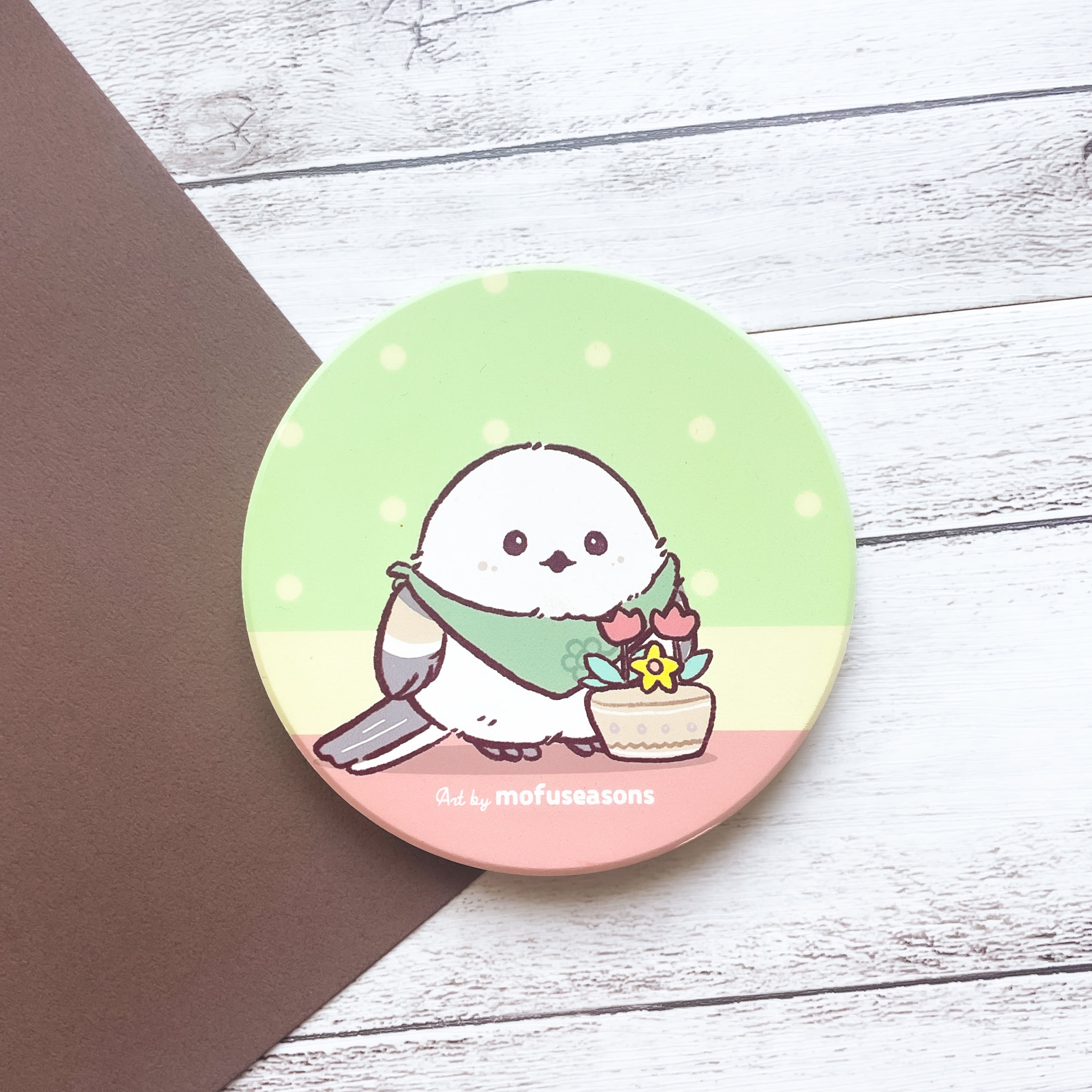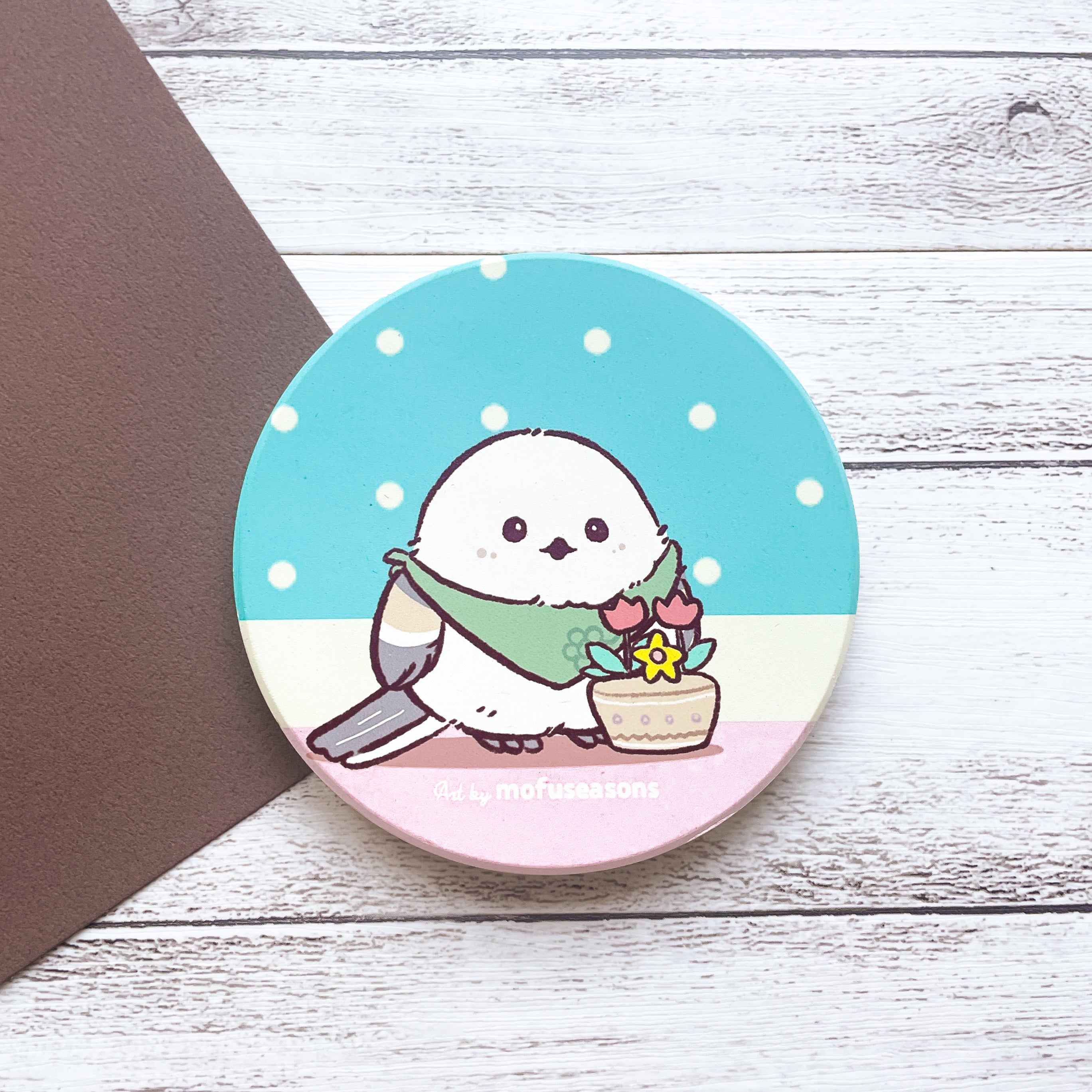 A ceramic coaster featuring an original Shimaenaga illustration, created to celebrate small growth and gentle progress. Cute, calming, and meaningful, it’s a simple everyday piece that adds warmth to your space while protecting your surfaces.